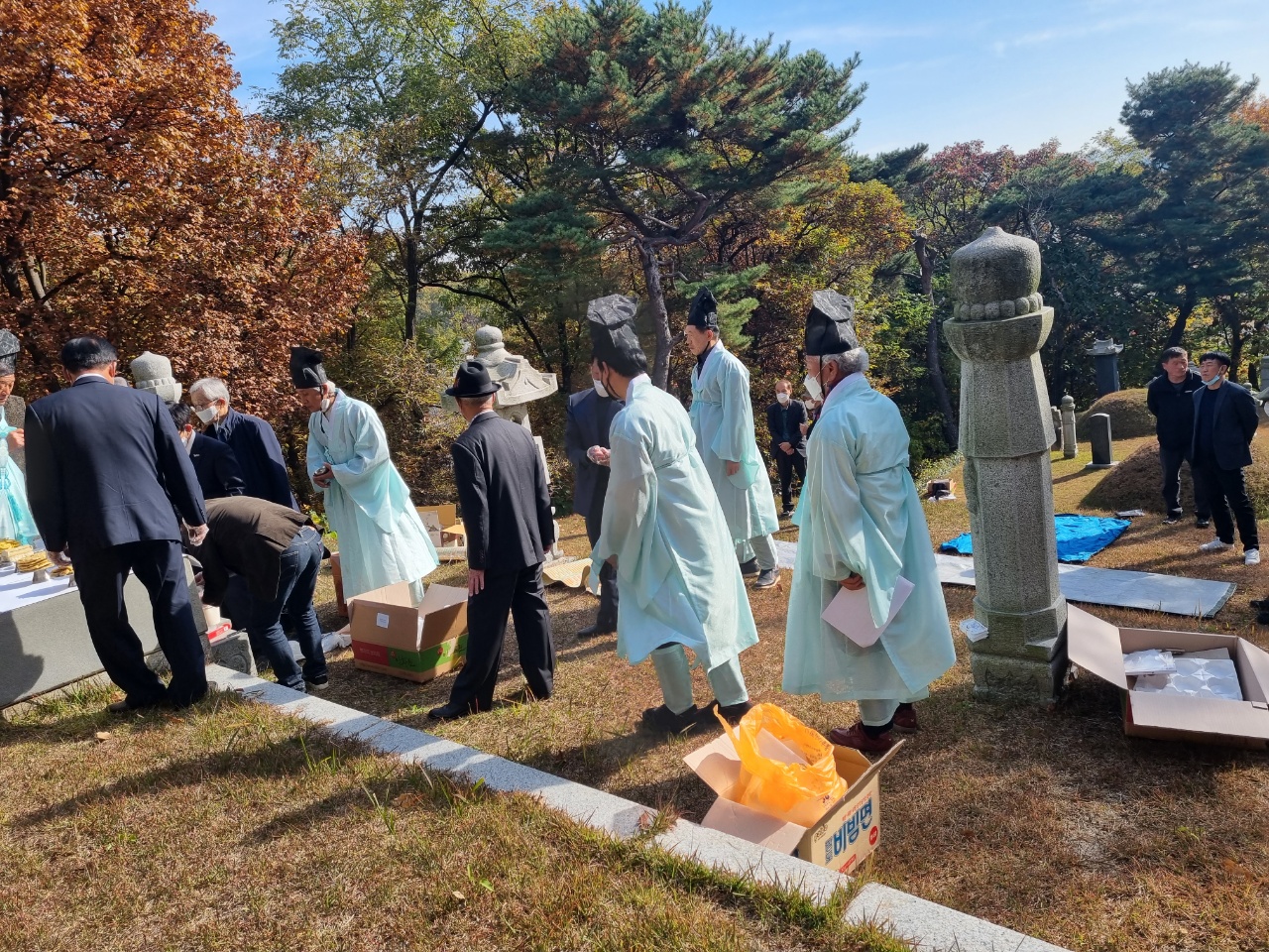시제 행사를 마치고 묘소 입구에서 간단하게 종원 회의를 진행하여 공지사항으로 윤제호 재산관리인 사망하였고, 유족으로부터 무리한 보상(3억)요구로 변호사를 선임하여 명도소송을 진행 중입니다, 자세한 종사 소식은 정기총회에서 논의 하기로 하였습니다. 점심으로 준비한 도시락을 먹으며, 2021년도 시제 행사를 종료하였습니다.
